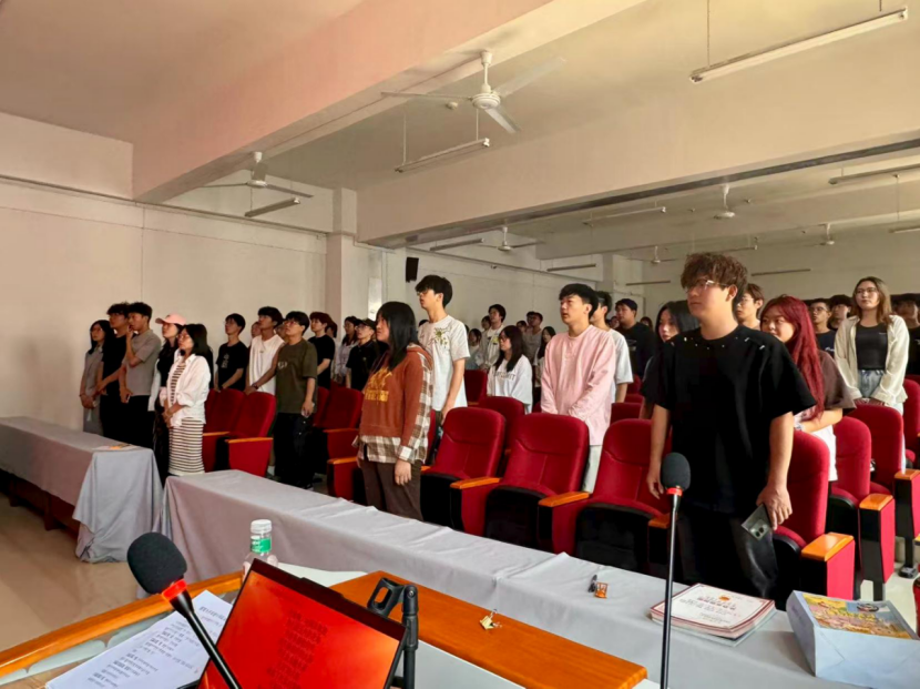2025年3月26日,团课开幕式在庄严的团歌声中拉开序幕,全体学生庄严肃立,唱响团歌,展现出新时代青年的蓬勃朝气与爱国情怀。