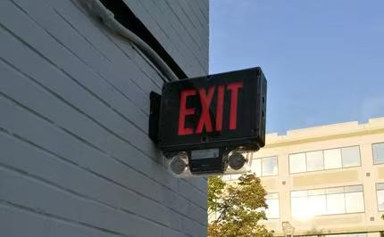 发生火灾时要保持冷静,时刻注意安全逃生标志,在平常要对逃生标志进行检修保证其在发生火灾时能够正常使用。