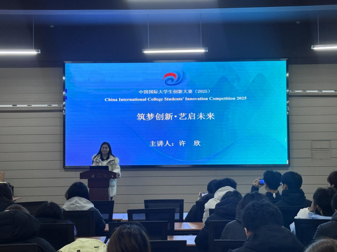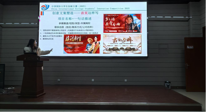 在分享会上,许欣老师以“筑梦创新·艺启未来”为主题,聚焦中国国际大学生创新大赛这一核心赛事,从赛事特色、参赛要求、备战策略等关键维度展开深度解析。许老师首先介绍了大赛高教主赛道、青年红色筑梦之旅赛道、产业命题赛道三大主体赛道的差异化定位——高教主赛道侧重“新工科、新医科、新农科、新文科”四新领域创新,青年红色筑梦之旅赛道聚焦乡村振兴与社会服务,产业命题赛道则通过校企协同解决企业实际难题。