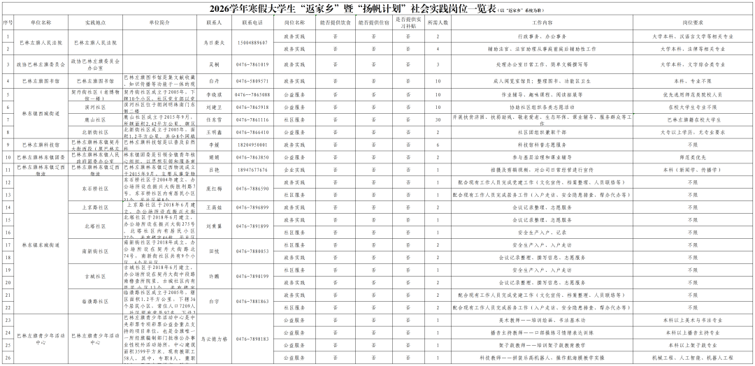 巴林左旗2026学年寒假大学生