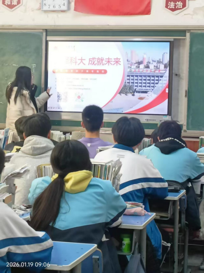 大一学子张志欣重返高中母校赤峰市新惠中学,在曾经的班主任班级开展主题宣讲活动,以校友身份分享成长感悟,解读高校特色,并为高三学子送上带有学校标识的纪念品与高考祝福。
