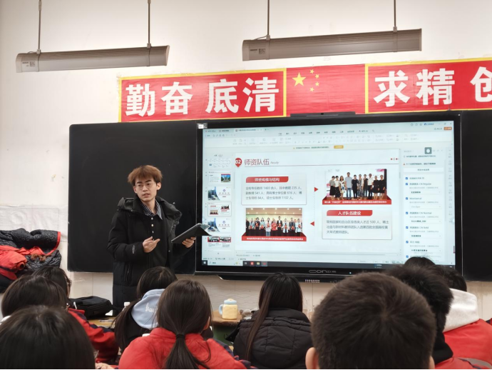 学子刘力嘉、陈光伟组成宣传团队,回到母校吕梁名师高中,开展“感恩母校-科大学子行”招生宣传实践活动,以学子视角传递科大风采,搭建起母校与高校之间的沟通桥梁,助力学校招生宣传工作有序推进。