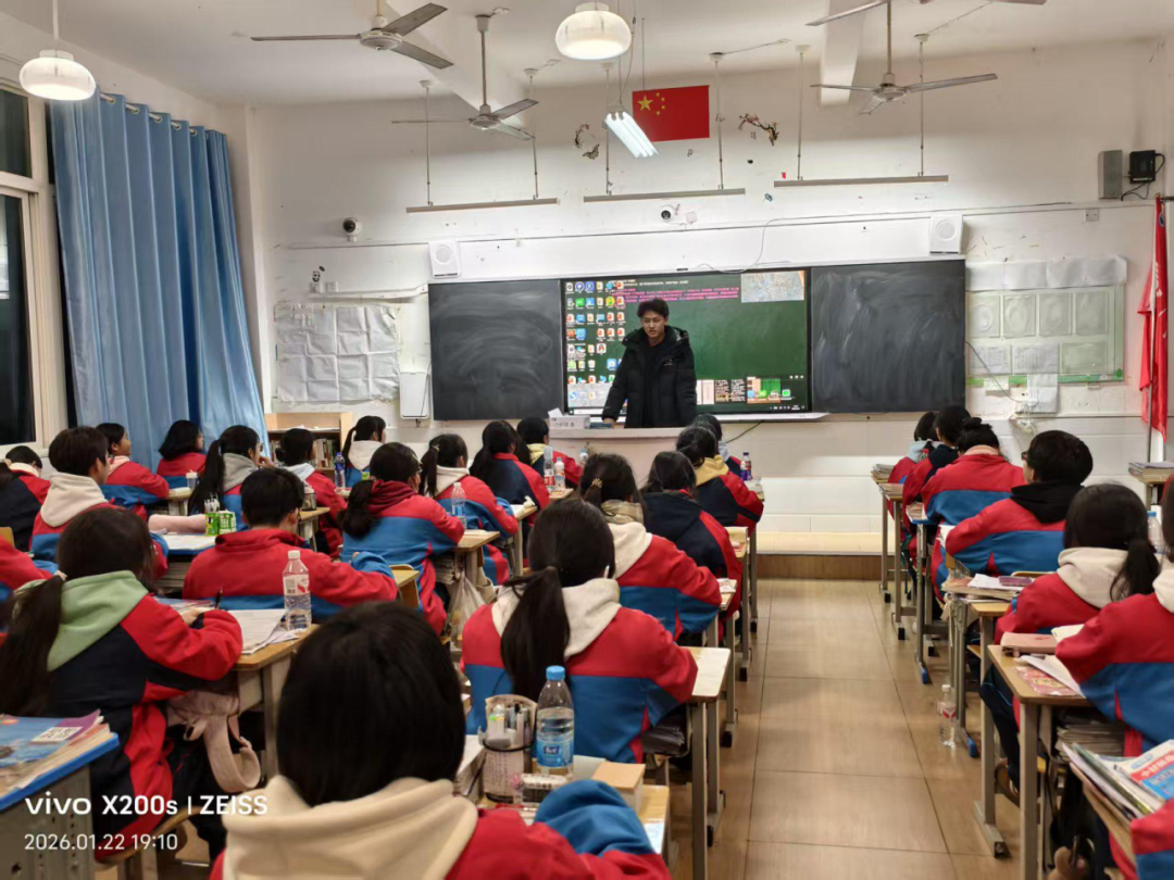 2026年1月22日,在遵义市第二十一中学,况安炀同学站在讲台上,结合自身经历,向学弟学妹们介绍了a片好色